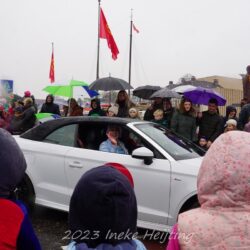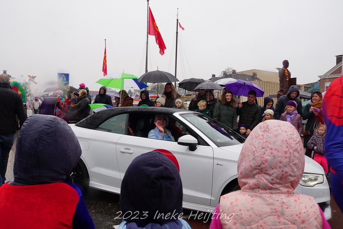 Heel langzaam vertrekt de stoet oja anders dan eerder effen wennen maar gelukkig de regel piet weet er alle van. Langs het water vele kindjes en de wagens en muziek van de optocht. Ja ga ik weer richting vaste plek goed zicht op het water en de weg..